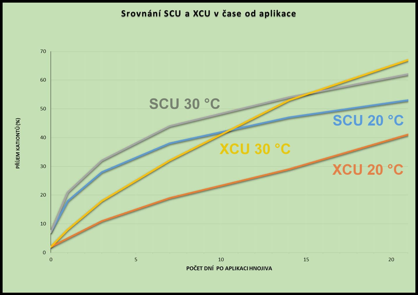 - PCU - řízeně uvolňované živiny (uvolňování je řízeno technologií POLYON, obalenými granulemi)